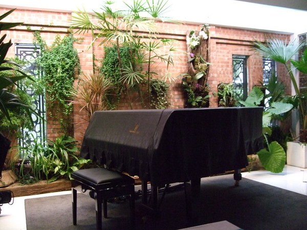 餐廳尾端放了架鋼琴 裝潢上用外部光線