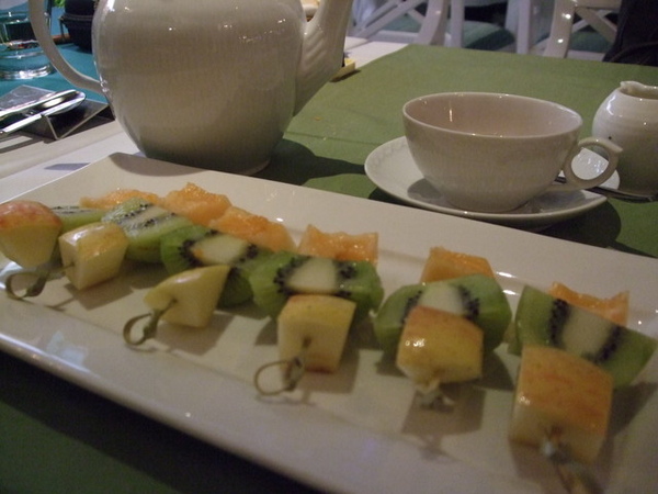 邊吃著新鮮水果與帶有焦糖香的紅茶
