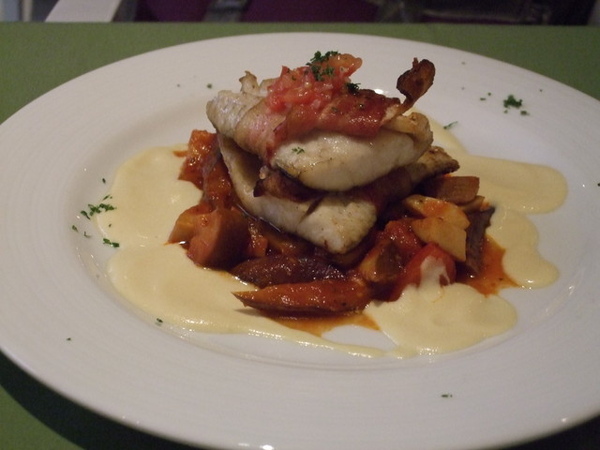 鱸魚味鮮 培根略老 兩者一同送入口中